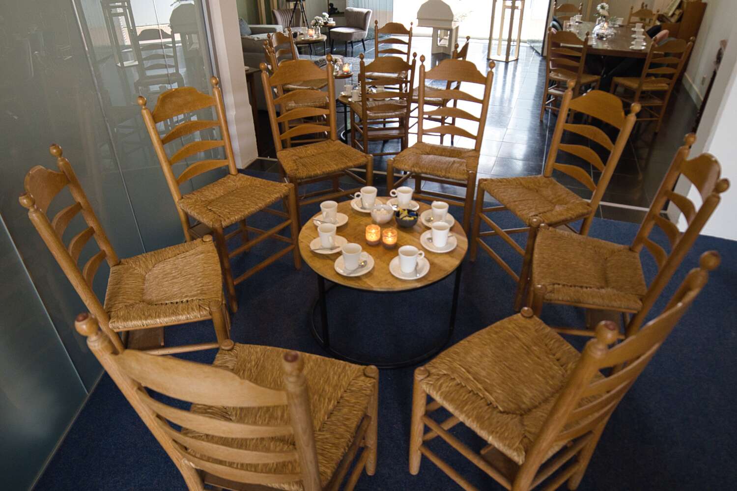 De ruimte leent zich om bij elkaar te zijn, maar ook zeker met anderen die met u meekomen. Geen probleem om hier met hen “te zijn”. Koffie en thee is aanwezig en zo te pakken.